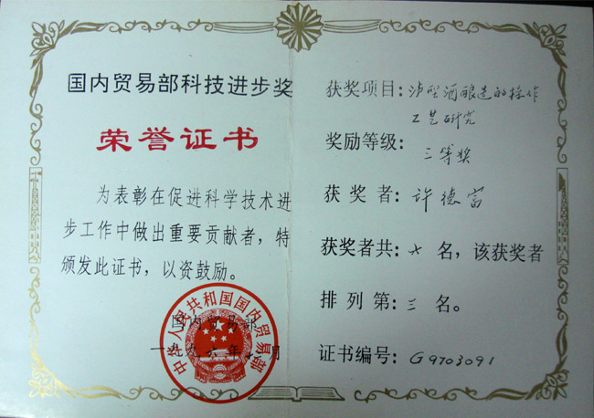 國內(nèi)貿(mào)易部科技進(jìn)步獎